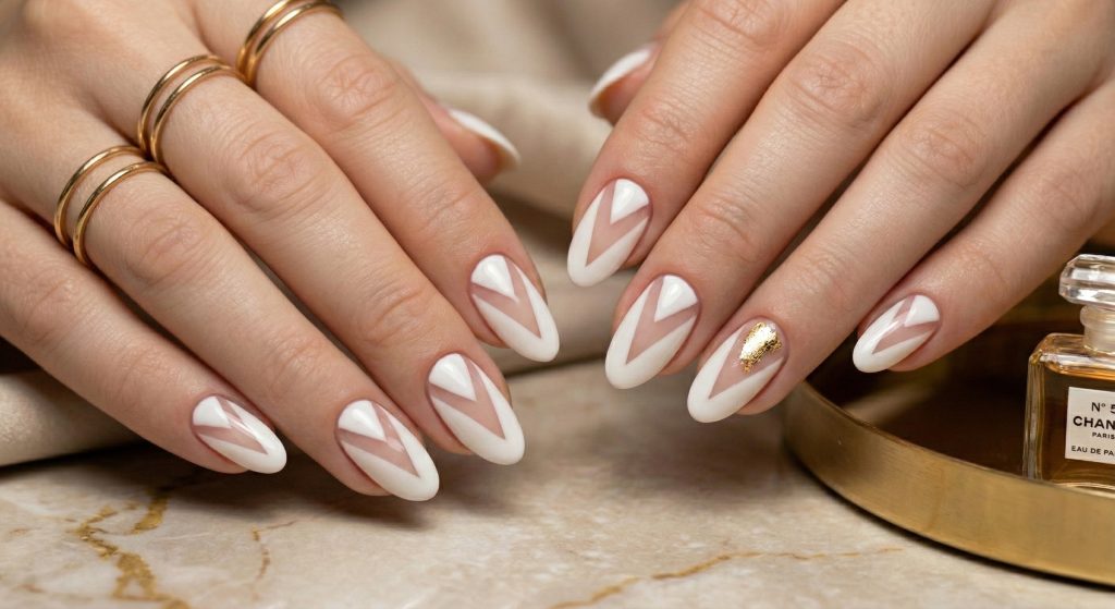 To świetna opcja dla kobiet ceniących nowoczesny design i nieoczywiste rozwiązania. Technika „Negative Space” polega na celowym pozostawieniu części płytki paznokcia niepomalowanej (lub pokrytej jedynie bezbarwną bazą), co tworzy geometryczne, transparentne wzory. Na Dzień Kobiet proponujemy subtelne, złote lub pastelowe linie przeplatające się z naturalnym kolorem paznokcia. Taki manicure rośnie w sposób niewidoczny, co czyni go nie tylko pięknym, ale i niesamowicie praktycznym!