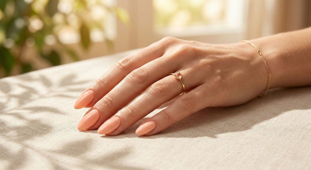 Zgodnie z najnowszymi trendami kolorystycznymi, ciepła, delikatna brzoskwinia to kolor, który króluje w tym sezonie. Wiosenne paznokcie na Dzień Kobiet w tym odcieniu to gwarancja świeżości i energii. Ten optymistyczny kolor pięknie podkreśla każdy odcień skóry i doskonale komponuje się z pierwszymi promieniami wiosennego słońca. Możemy zostawić go w wersji gładkiej lub dodać delikatny, matowy top coat dla uzyskania nowoczesnego wykończenia.